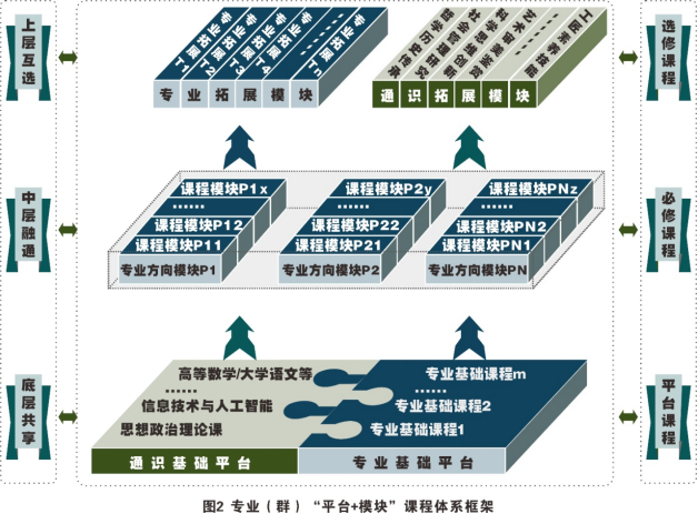 2.立足通专融合,重构“两平台+三模块”课程体系