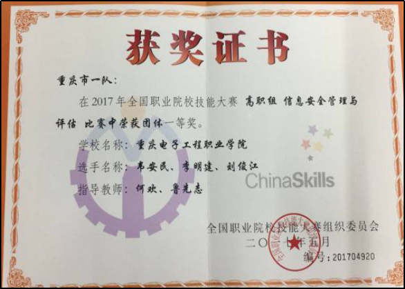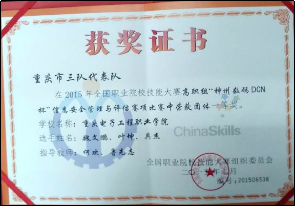 2013年电子产品设计及制作 2015年信息安全管理与评估