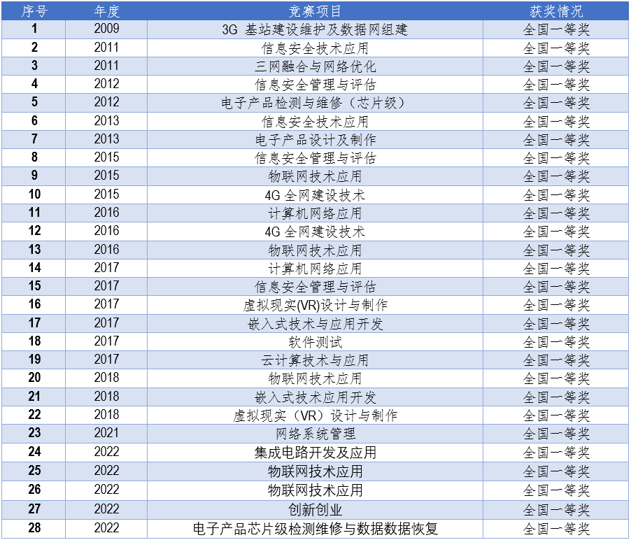 2009-2021年共计获得“全国职业院校技能大赛”奖项72项,其中一等奖28项。
