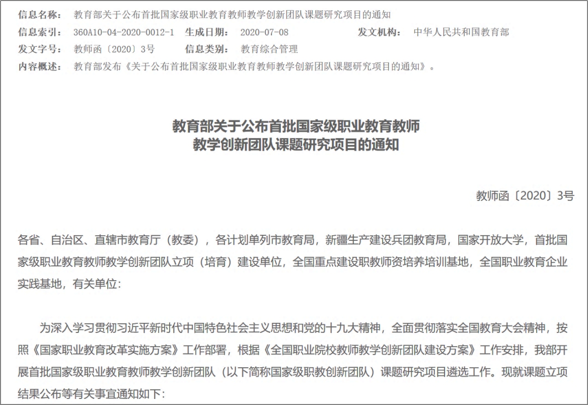 数据来源:教育部关于公布首批国家级职业教育教师教学创新团队课题研究项目的通知 - 中华人民共和国教育部政府门户网站 (moe.gov.cn)