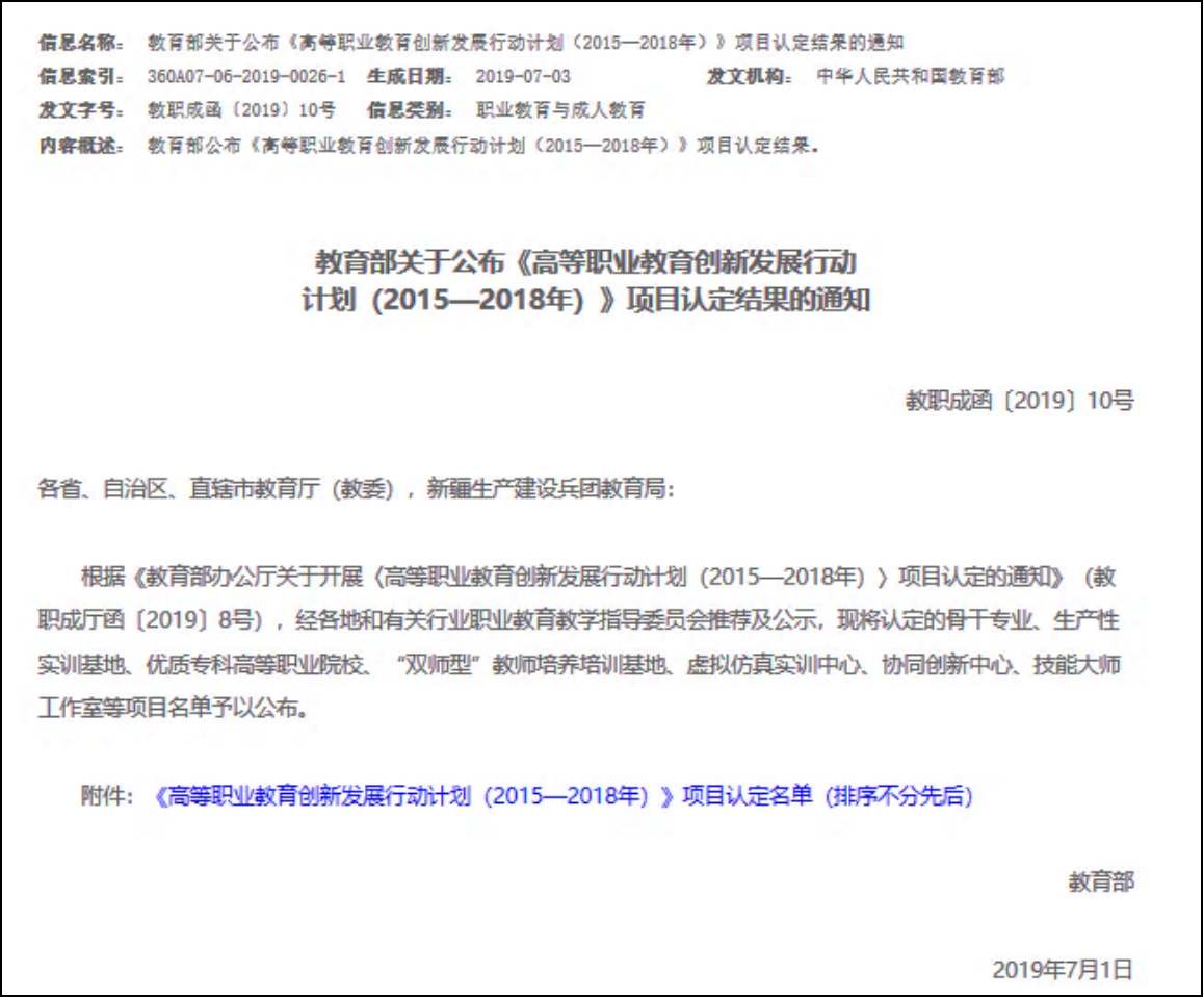 数据来源:教育部关于公布《高等职业教育创新发展行动计划(2015—2018年)》项目认定结果的通知 - 中华人民共和国教育部政府门户网站 (moe.gov.cn)