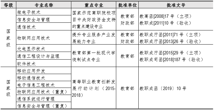 近10年,学校共有国家级重点专业11个(含骨干专业),见表。