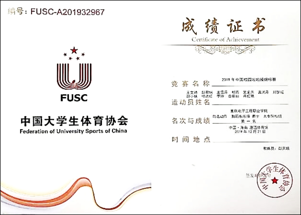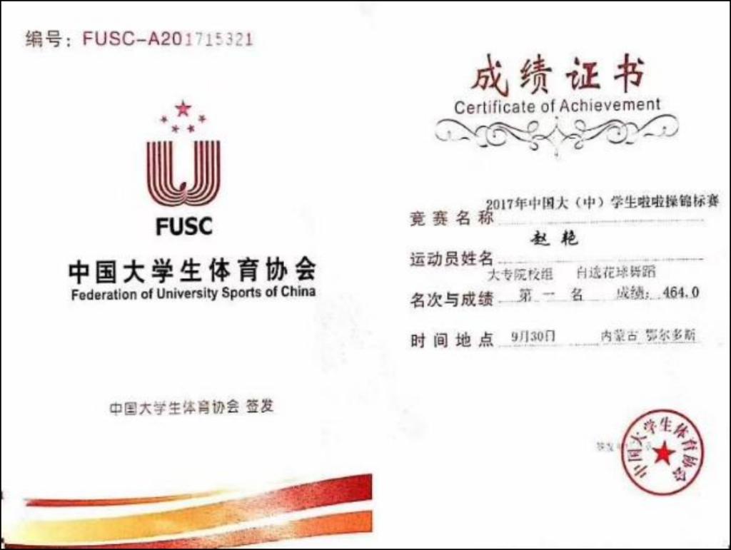 2017和2019年获中国大学生啦啦操锦标赛第1名3项