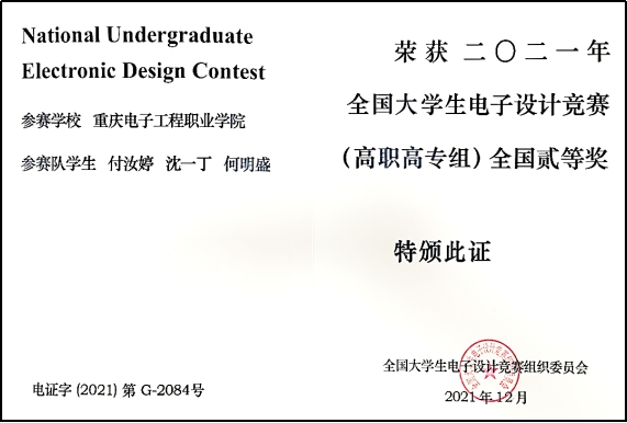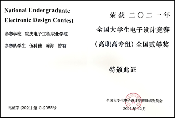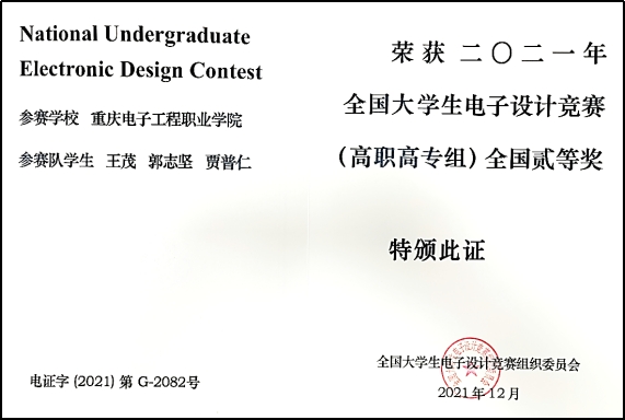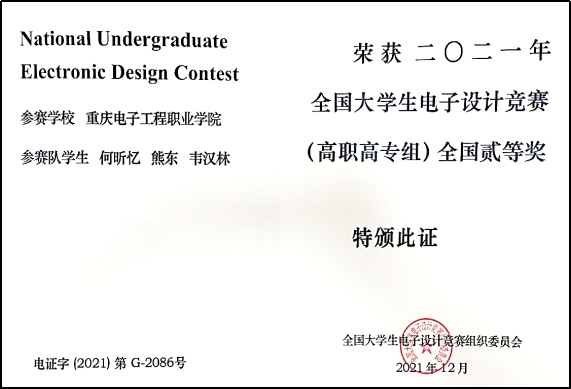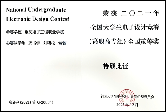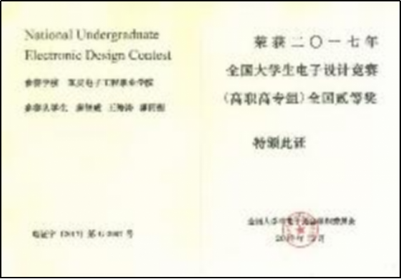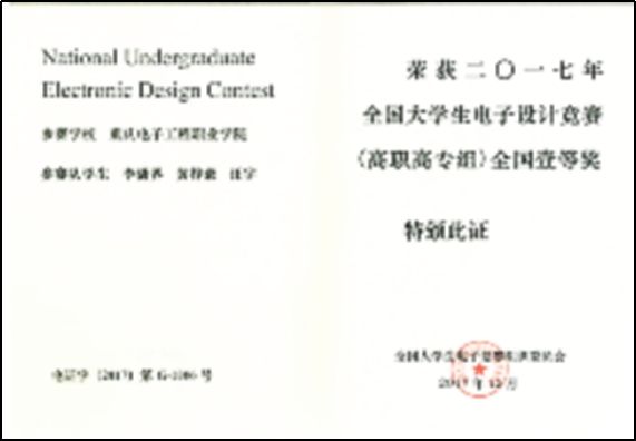 2015年至今共计获得“全国大学生电子设计大赛”奖项11项,其中一等奖2项、二等奖9项。