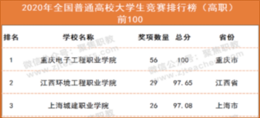 2020年全国普通高校大学生竞赛排行榜(高职)位列全国第1