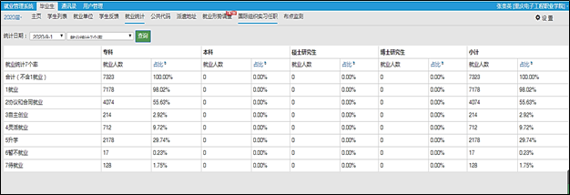 就业管理系统截图 - 2020届毕业生初次就业率为98.02%